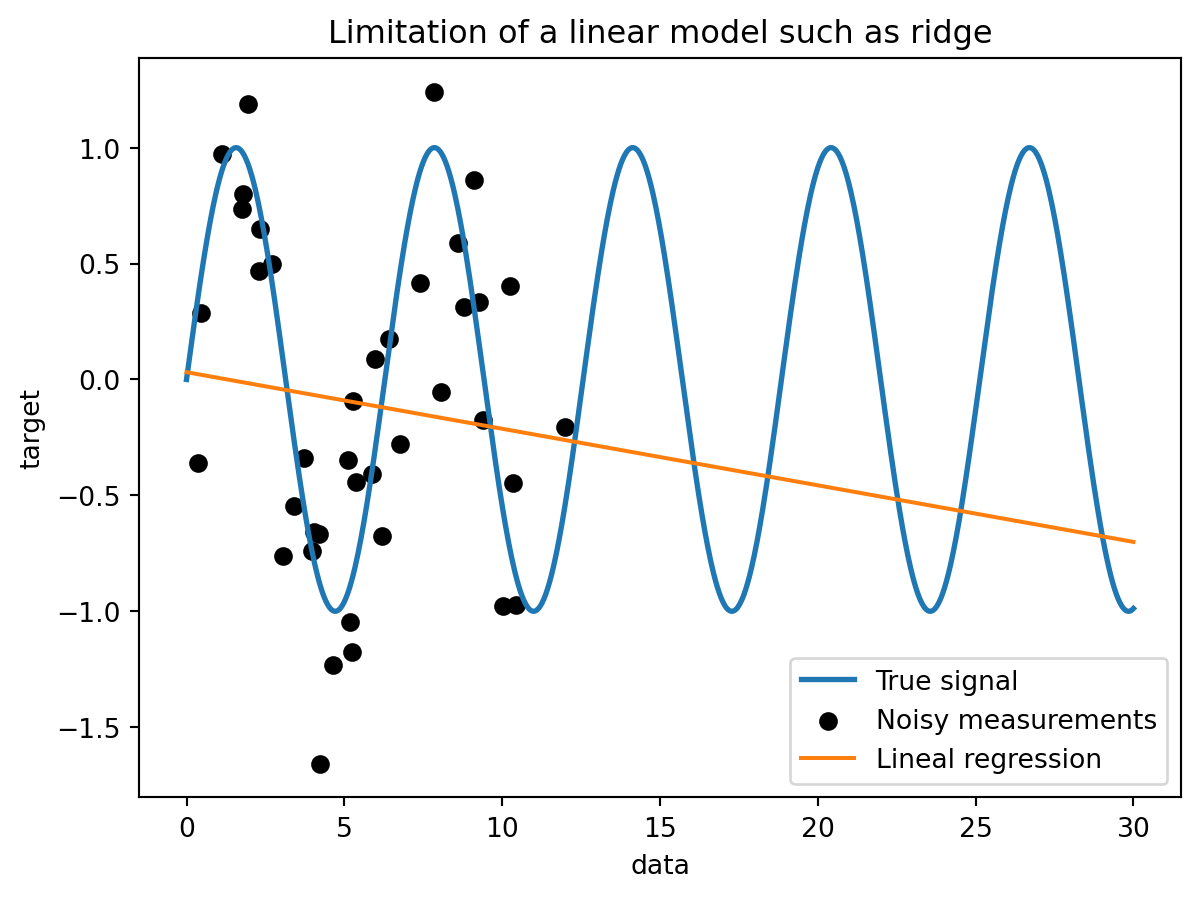 _ = plt.title("Limitation of a linear model such as ridge")